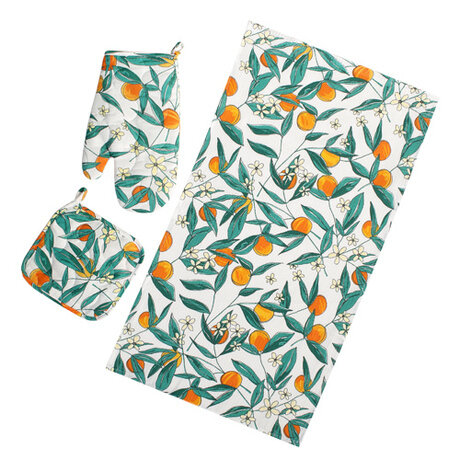 Набор для кухни 'Радушная хозяйка' 3 предмета (рукавичка-прихватка, прихватка, полотенце), 100 % хлопок, 'Сочный персик'