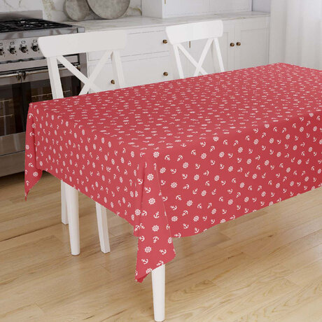 Скатерть 'Ассорти' 145х145, рогожка, 100 % хлопок, 'Якоря красный'