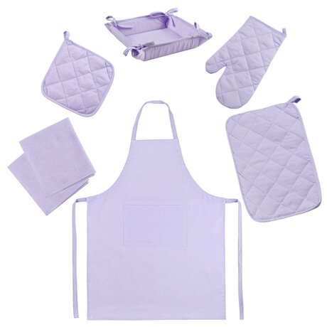 Набор для кухни 'Цвет Эмоций' 7 предметов (прихватка-рукавичка, прихватка, текстильная ваза, подставка под горячее, фартук, полотенце вафельное - 2 шт), 100 % хлопок, 'Лаванда'
