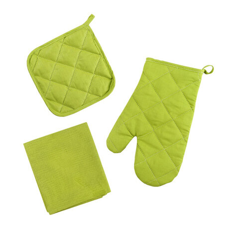 Набор для кухни 'Цвет Эмоций' 3 предмета (рукавичка-прихватка, прихватка, полотенце), 100 % хлопок, 'Лайм'