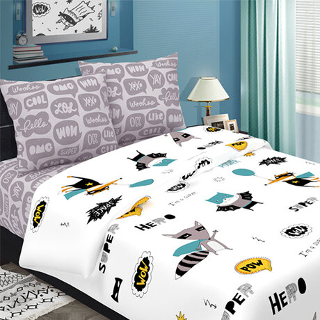 КПБ 'ДайПоспать', 1,5 спальный с 2-мя наволочками 70х70, бязь, 100 % хлопок, пл. 125 гр./кв.м., 'Супергерои (белый)'