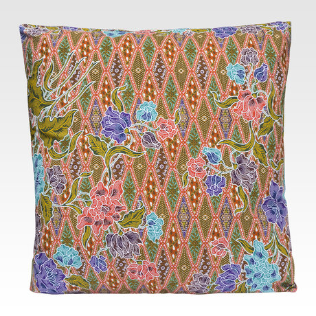 Декоративная пестрая подушка с цветочным орнаментом. Мягкая ткань обивки фактурой напоминает вельвет. Приятное дополнение для мебели в домашнем кабинете или гостиной.