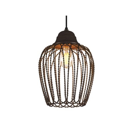 Подвесной светильник из коллекции Evron выполнен из металла коричневого цвета. Лампа распологается под декоративной плетеной решеткой. Высота светильника регулируется.