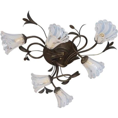 Назначение светильника: для гостиной, Стиль светильника: флористика, Материал светильника: металл, стекло, Длина (мм): 450, Ширина: 450 мм, Высота: 200 мм, Количество ламп: 6 шт, Тип лампы: накаливания, Мощность: 60 Вт, Патрон: Е14, Цвет арматуры: золото