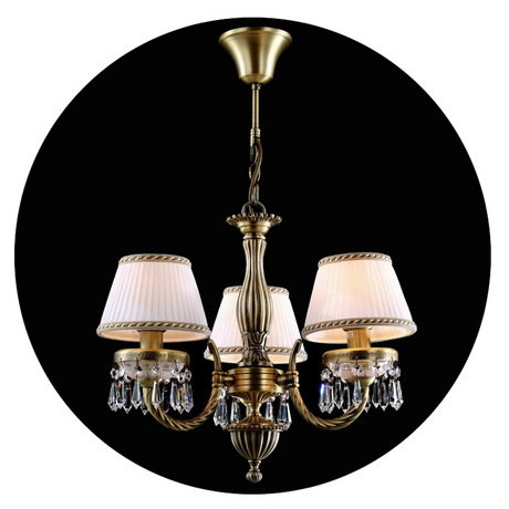 Назначение светильника: для гостиной, Стиль светильника: классика, Тип: подвесная, Материал светильника: металл, ткань, хрусталь, Диаметр: 450 мм, Высота: 360 мм, Количество ламп: 3 шт, Тип лампы: накаливания, Мощность: 40 Вт, Патрон: Е14, Цвет арматуры: латунь