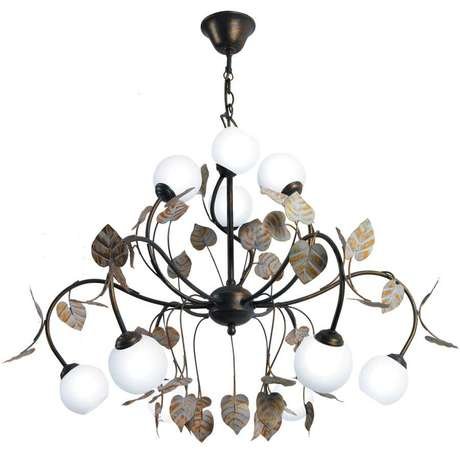 Назначение светильника: для комнаты, Стиль светильника: флористика, Материал светильника: металл, Ширина: 720, Диаметр: 720, Высота: 620, Количество ламп: 10 шт, Тип лампы: накаливания, Мощность: 40 Вт, Патрон: G9, Пульт ДУ: нет, Цвет арматуры: медь