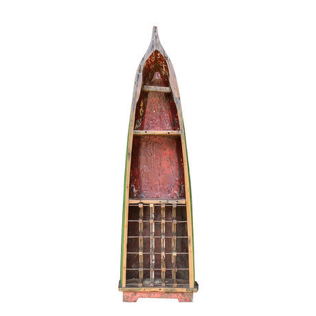 Винный шкаф, выполненный из старой рыбацкой лодки классической правильной формы с сохранением оригинальной многослойной окраски.